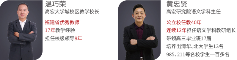 高宏教育高薪聘请全职专业的教师队伍,目前全职教师超百人,有来自公私校的优秀教师、知名机构名师等,同时,各科还聘请福建省学科专家、特级教师作为学科专家,深度指导教学。