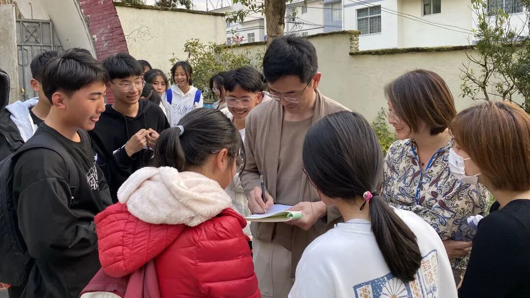 讲座结束后,同学们纷纷簇拥住田林博士,请他在本子上留下祝福语和签名,一位学生兴奋地说道:“这是信仰的力量!”