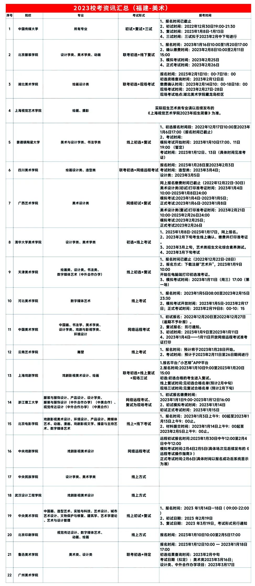 2023年校考院校最新发布的艺术类招生简章及考试时间~