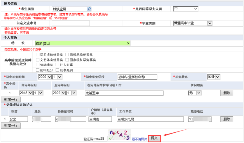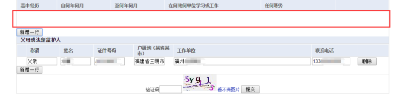 1、碰到高中经历、父母或法定监护人选项不能新增时,请参考第一点考生注意事项浏览器配置,使用IE9及以上版本的浏览器进行填报。