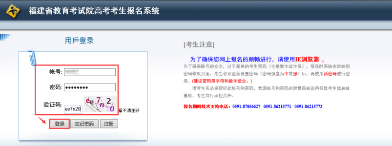 第一步:在登录界面输入已注册的账户名,密码及验证码,点击登录