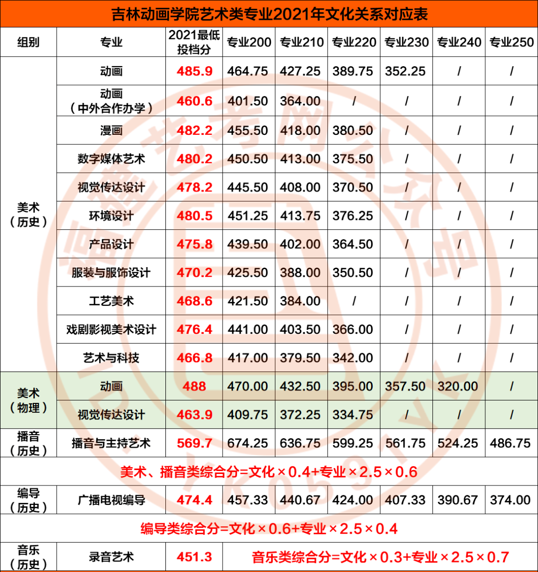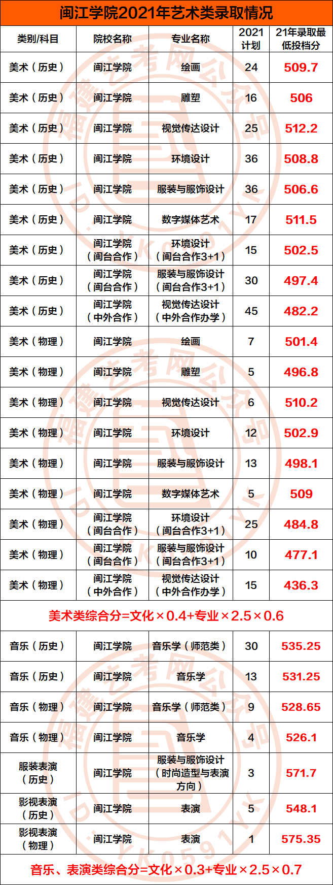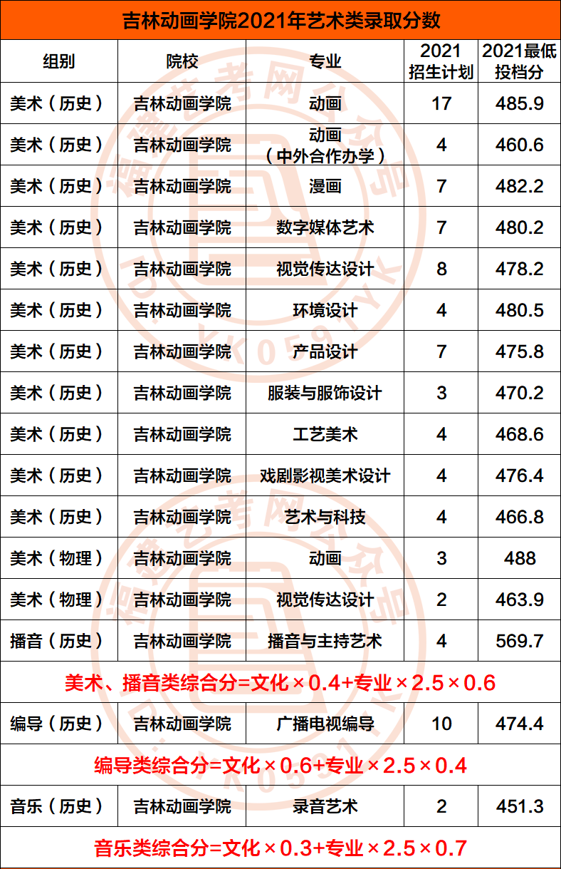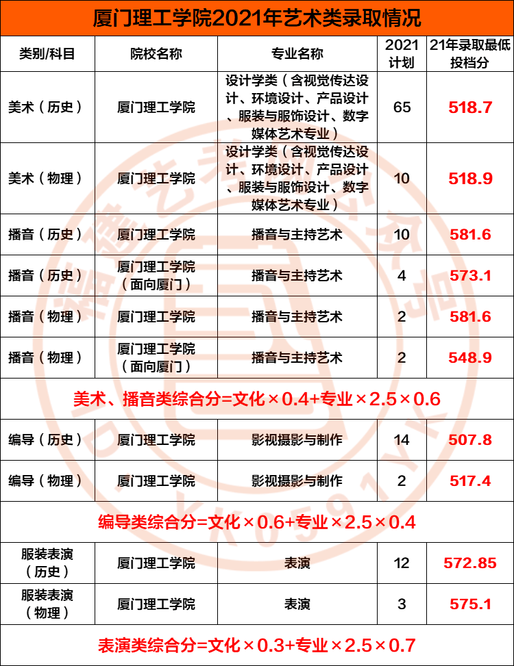 2021年艺术类录取分数