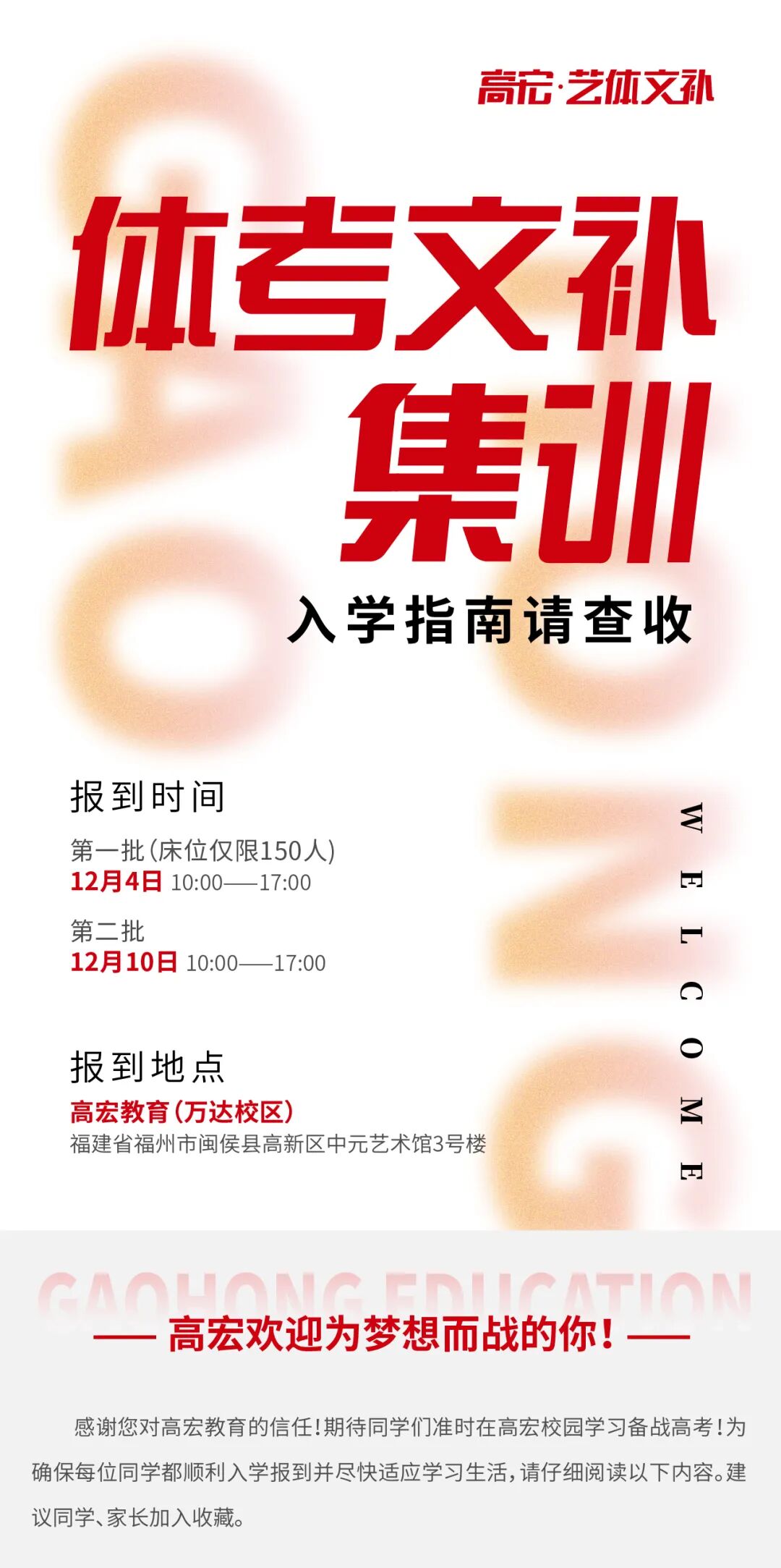 欢迎新同学|高宏教育·体考文补2023届新生入学指南,请查收!