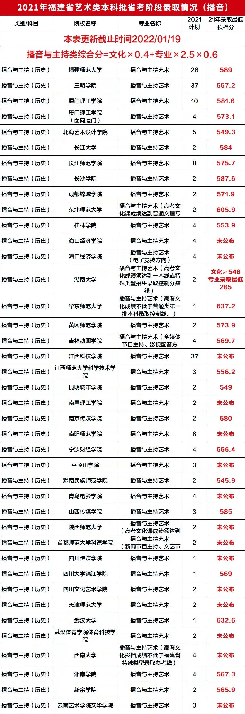 2021年普通高校招生「播音类」录取分数汇总 - 历史组