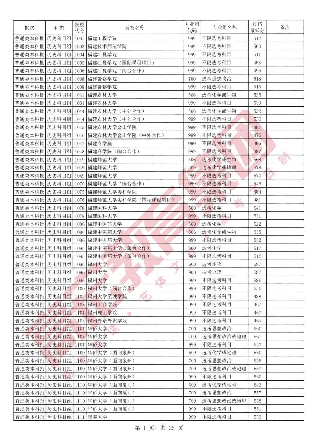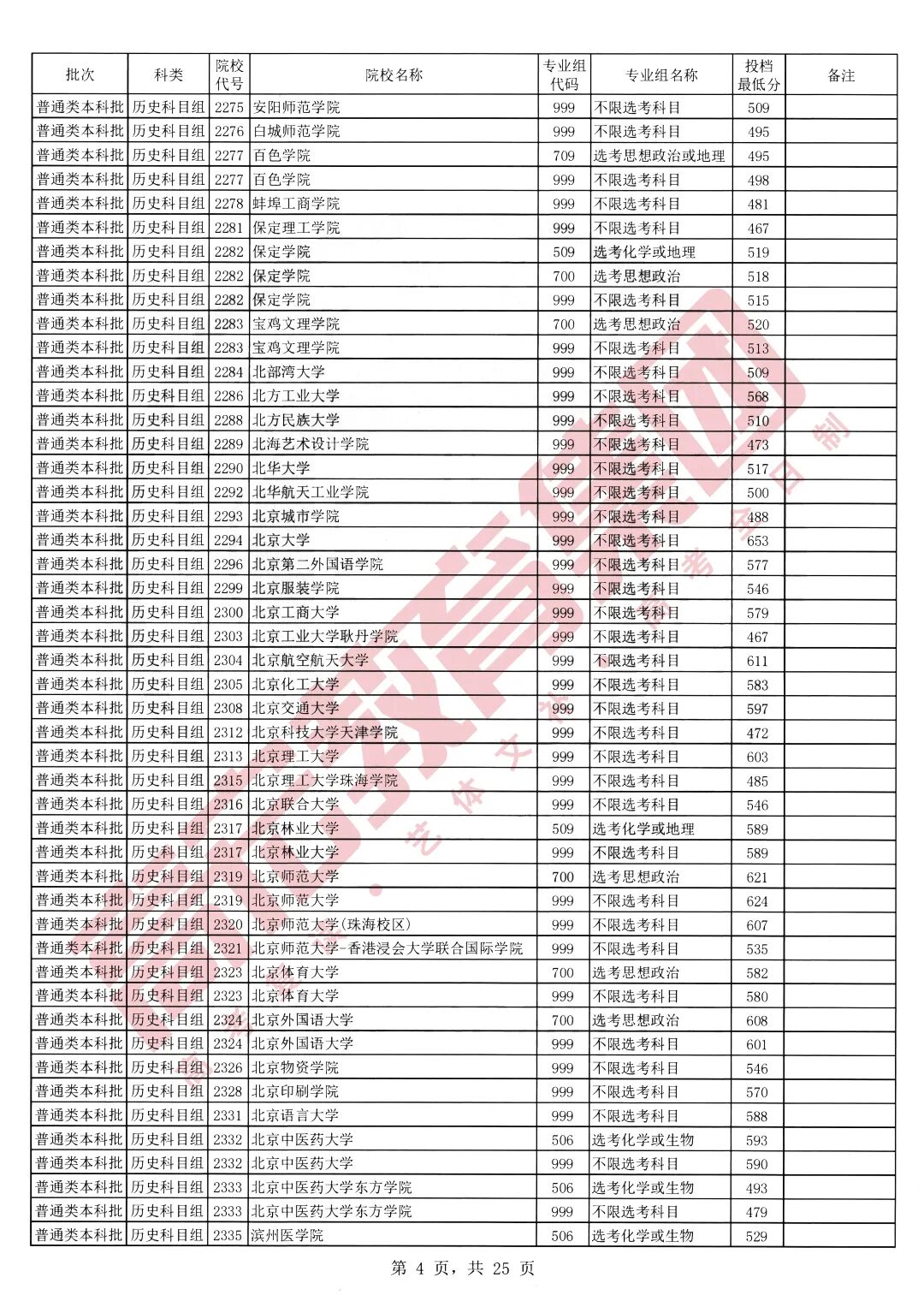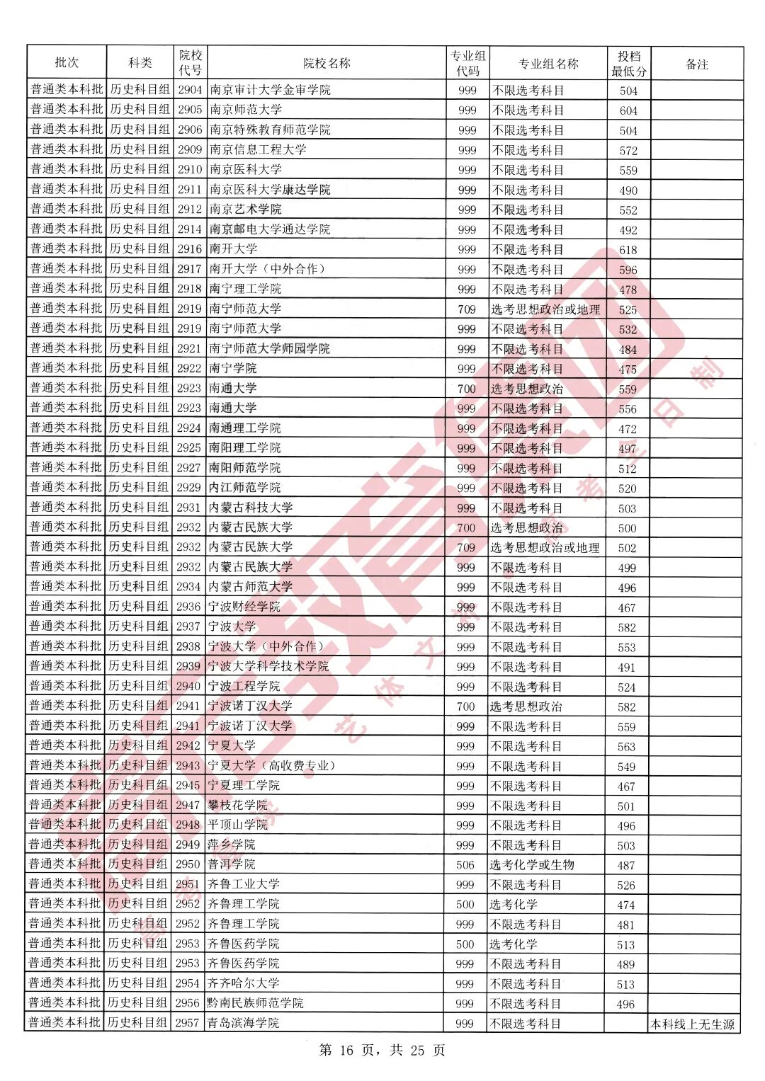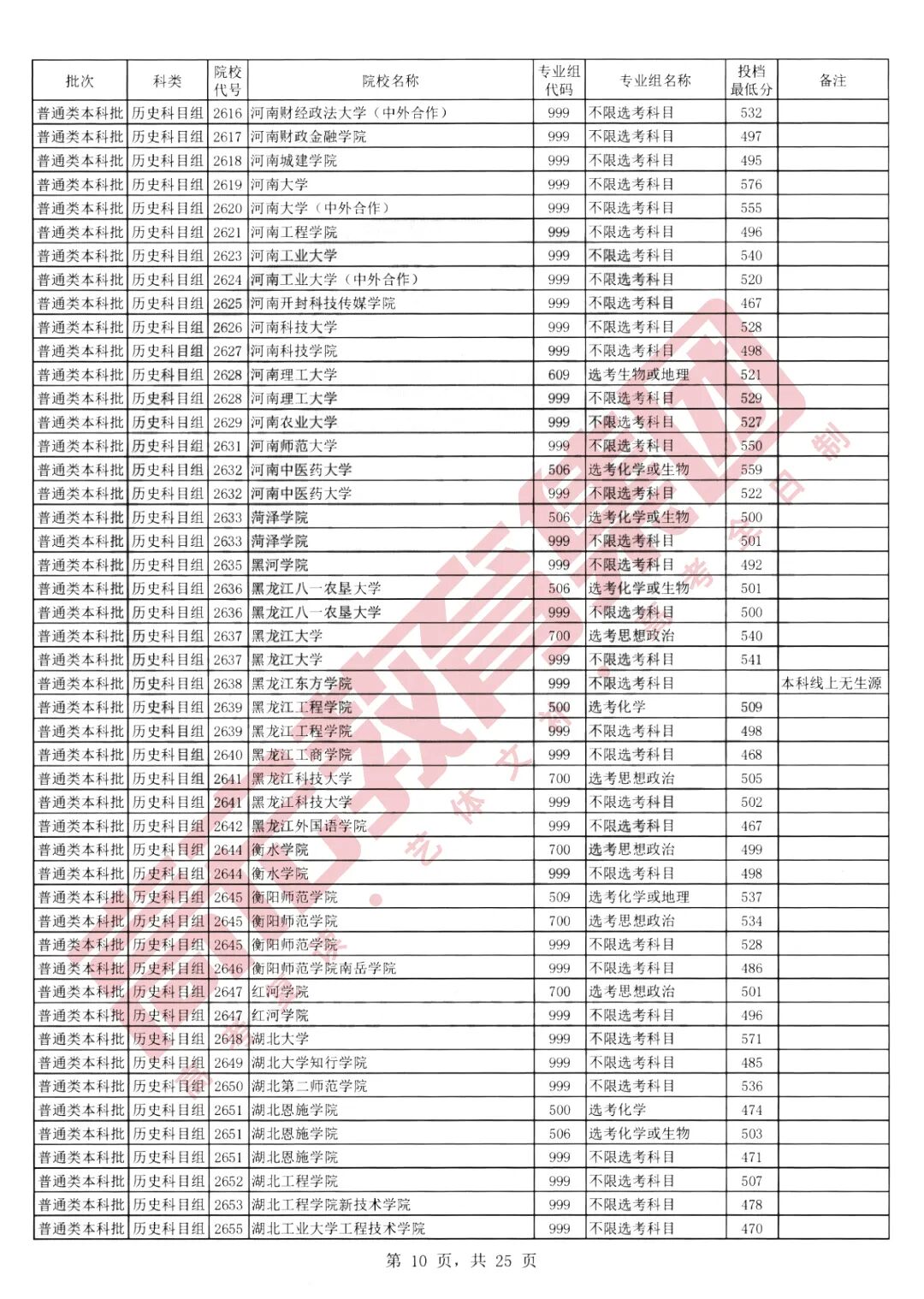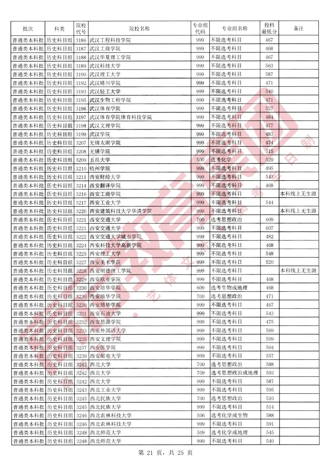 高考志愿填报-历史组 |2021年普通高校招生本科常规批全国院校的最低投档线!