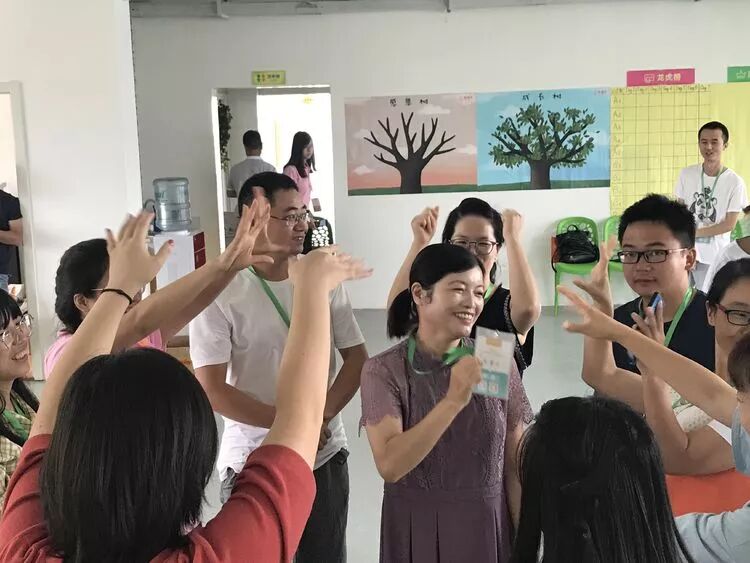 研习营导师余粤老师在现场以有趣的游戏指导学员如何提升积极心态。