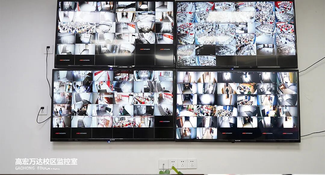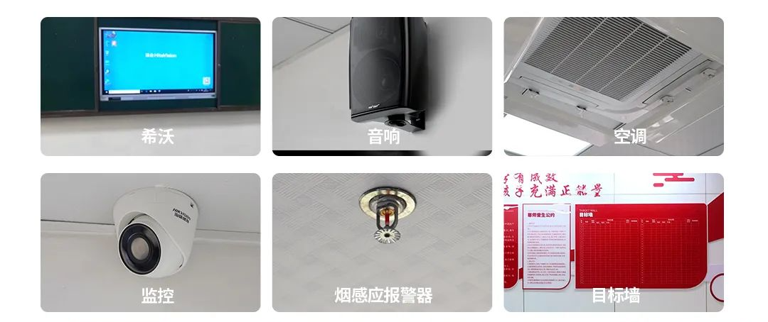 教室中用于广播、英语听力的音响、各教室独立的空调及烟感系统、全校区配置的监控设备也是一应俱全,保障学子舒适度及安全的同时,也方便班主任、教官实时观察课堂情况,保障课堂秩序。