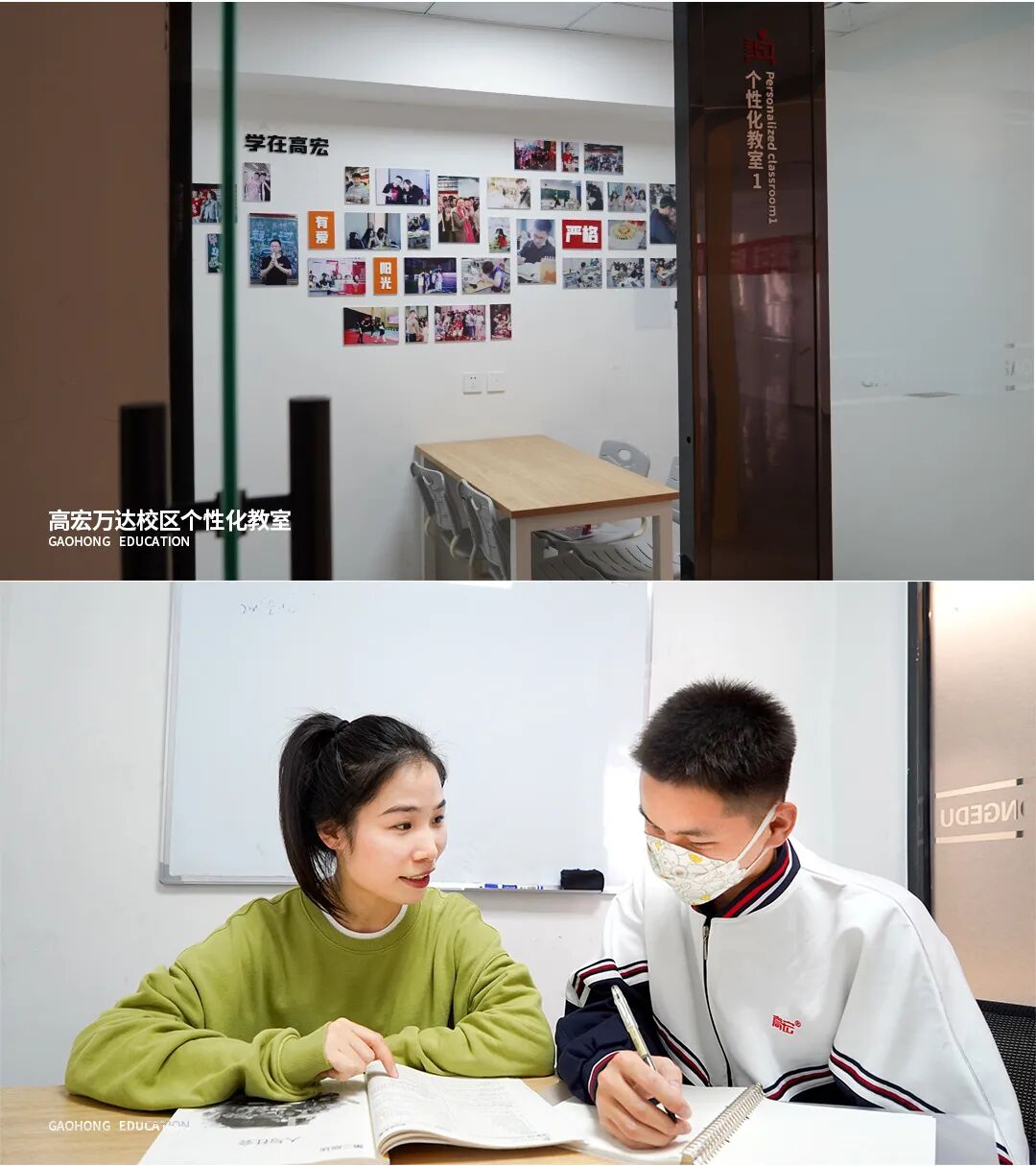 学习区整洁明亮,配备常规教室、个性化教室及班主任教师办公室,教学区走廊摆放桌椅给学子提供空间,方便和老师交流学习问题,充满浓厚的学习氛围。