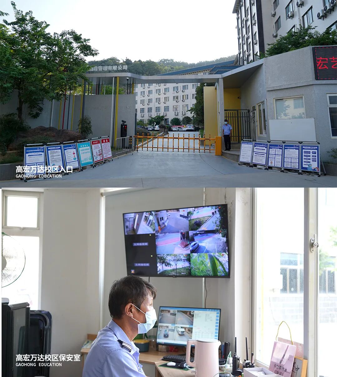 高宏教育万达校区是全封闭、全日制校区,校门处24小时都有安保人员值守,疫情期间,严格按照要求检查入校人员健康码,行程码,24小时核酸,体温测试等信息。