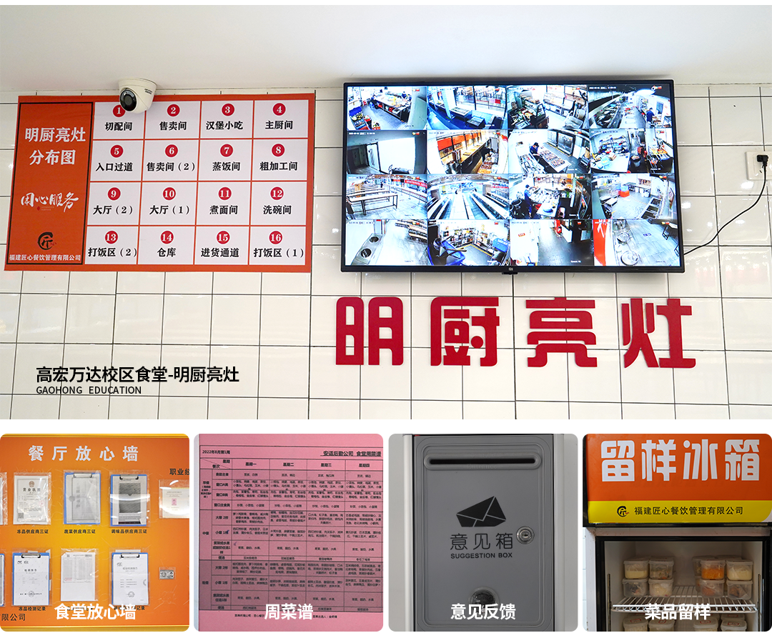 明厨亮灶:食堂后厨实时监控并展示工作流程,方便学子、老师和家长进行监督。