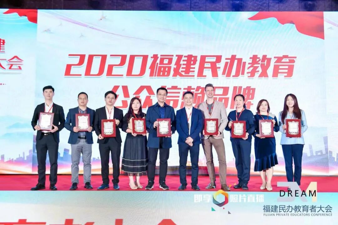 受高宏李寿山总校长的委托,高宏教育研究院院长兼旗山校区校长温巧荣老师代表学校领取“2020福建民办教育公众信赖品牌”大奖。