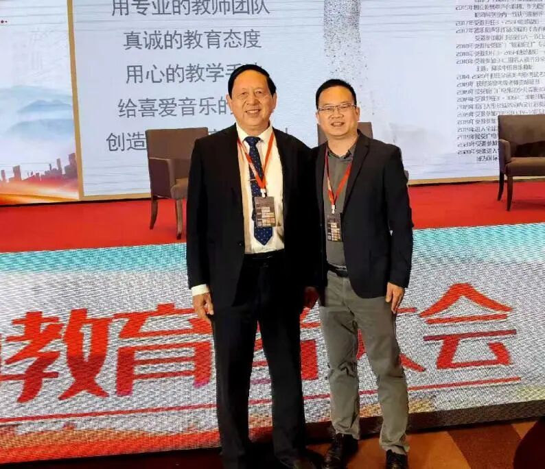 温巧荣校长(左)与顾问陈坦生先生(右)愉快交流、合影