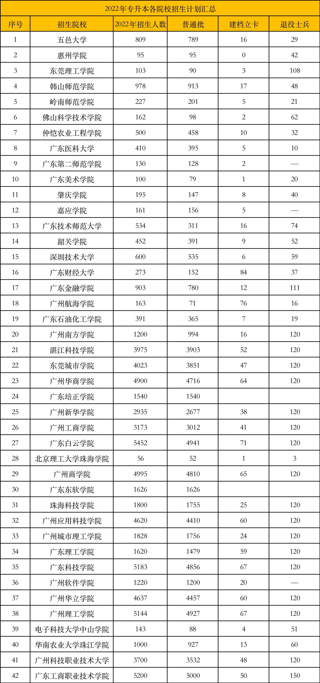 而2022年广东省专升本招生计划又如何呢?如下图: