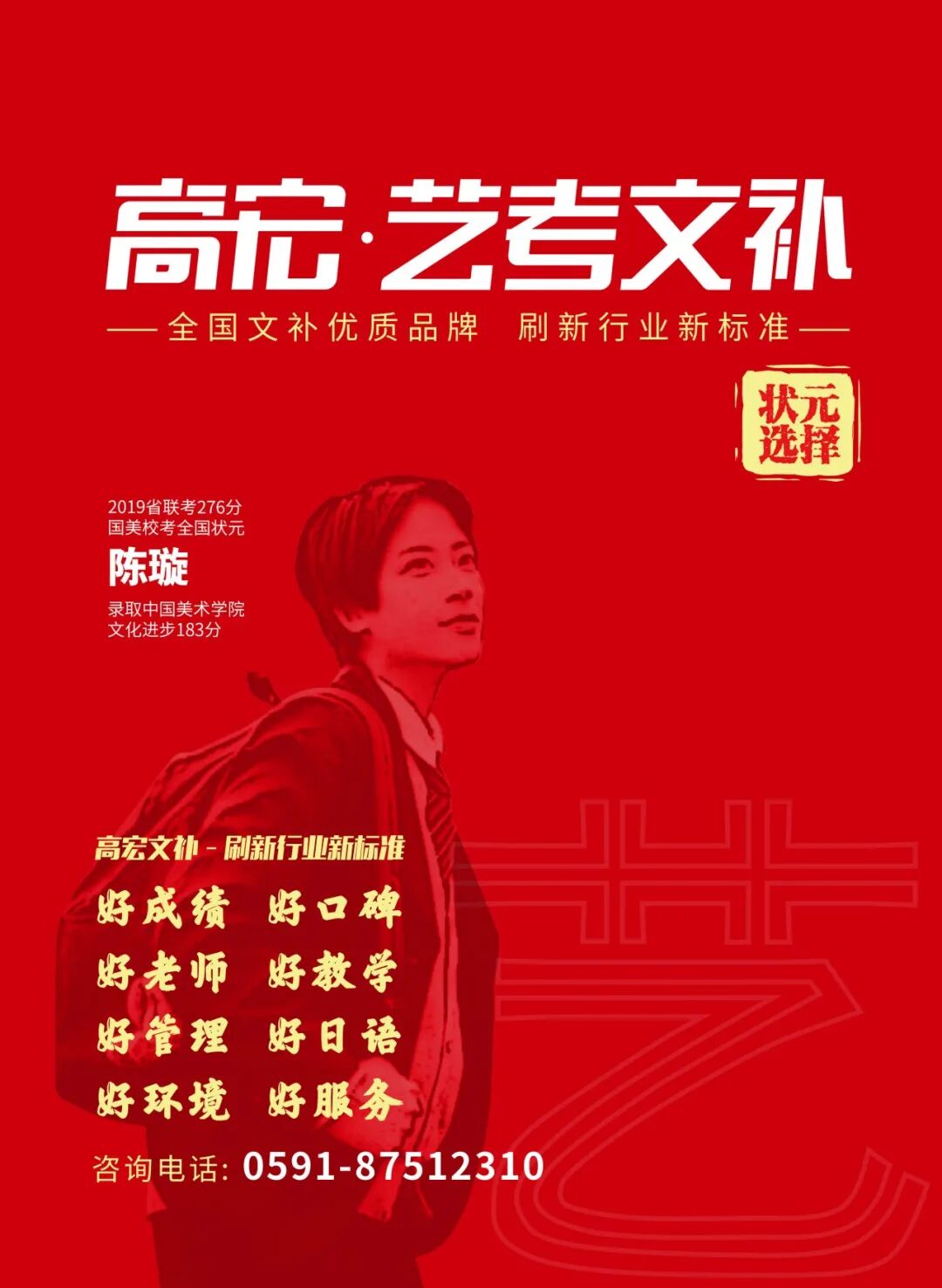 高宏作为一个有师资、有质量的艺体文补机构,拥有八大办学优势:成绩口碑、专业师资、科学管理、办学环境、正规合法、分层教学、日语特色、志愿指导。