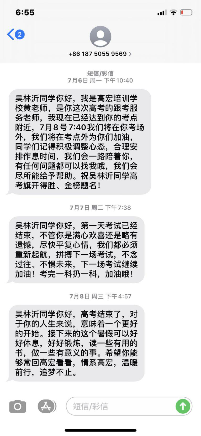 我不敢想象,如果没有高宏,三四百分的我,连过线都难。疫情之下,选择高宏,让我圆了大学梦。