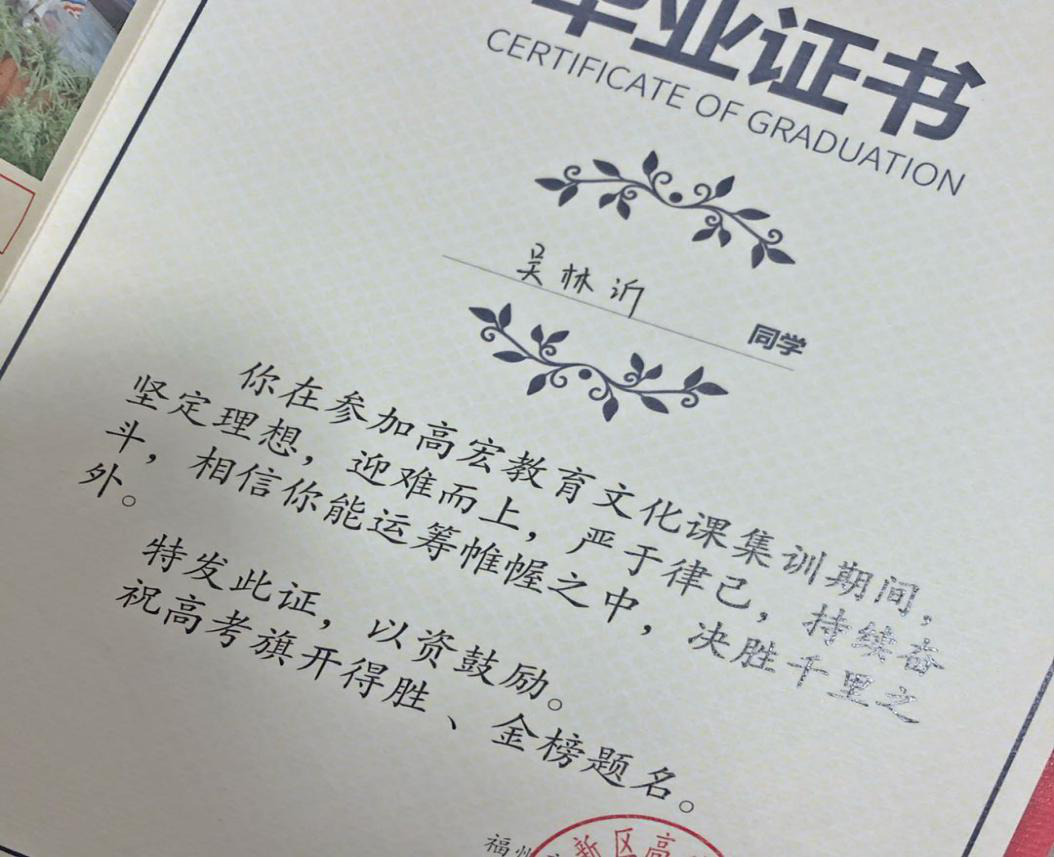 还不到一个月,高宏就通过福州市疫情复课申请,能够正式开学啦!身边的同学都透露出无比羡慕的眼光。