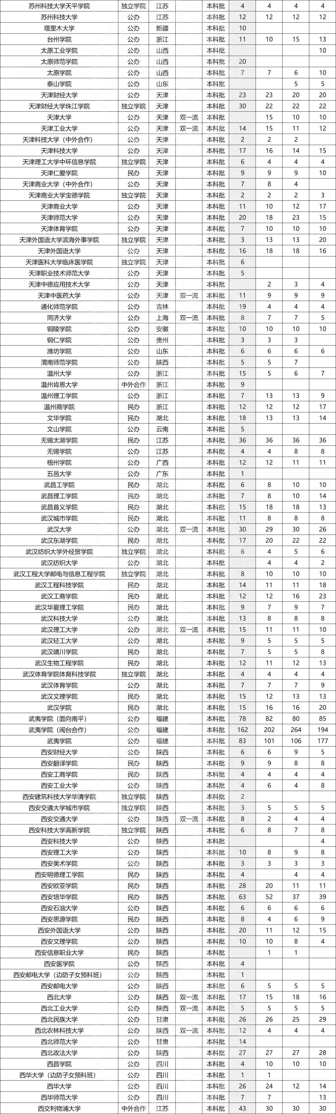 注:以下招生计划由人工整理,可能存在些许误差,请同学们在填报时以学校发的考试院招生计划本为准。