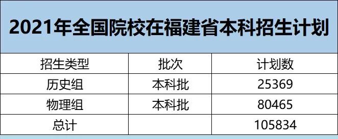 2.2021年全国院校在福建普通本科批物理组招生数大约为8.05万,2020年招生7.6万人,历史组招生数大约为2.5万,2020年为2.1万人。