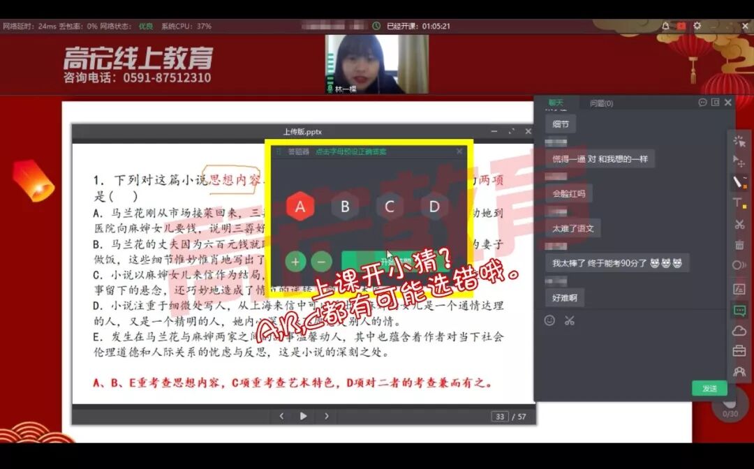 即使数百人同时在线,教师的授课视频和板书都能流畅的传播到每个学生的视频终端,只要学生所在地网速足够,不用担心因为卡顿或者因为声音、画面等出现静止而错过老师的重点内容。我们也承认,2月1号高峰期,的确某个时段出现卡顿,但绝对不像部分平台,天天出现卡顿等问题。