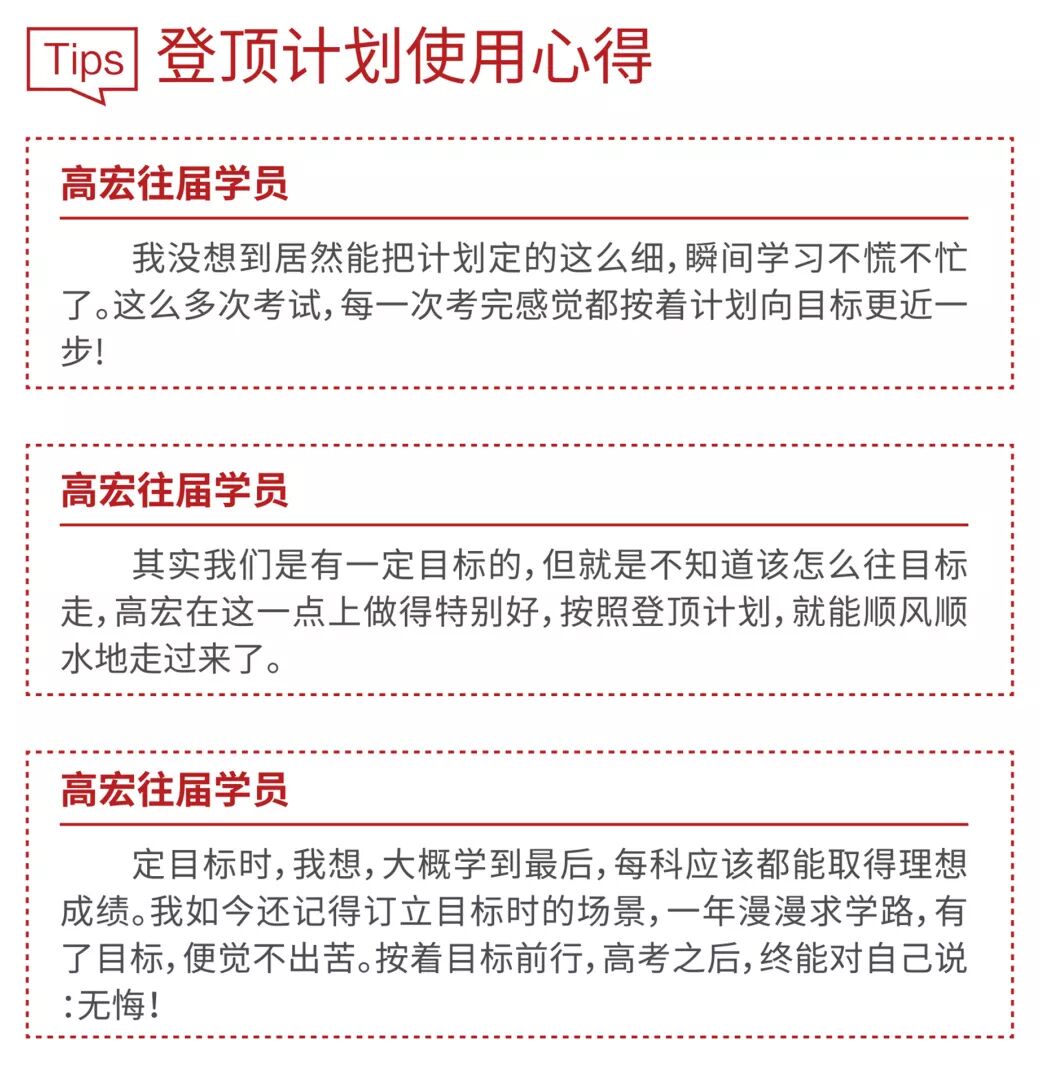 根据每个人的情况,结合目标大学和专业,帮助同学们制定一个长期的学习规划,最终落实到每一天每一科目的学习中,制定每天短期计划、周计划、月计划、年计划。就像登上顶峰一样,把山峰高度拆分为每1000米作为一个小目标,通过一步一步的坚持,达成心中所愿。