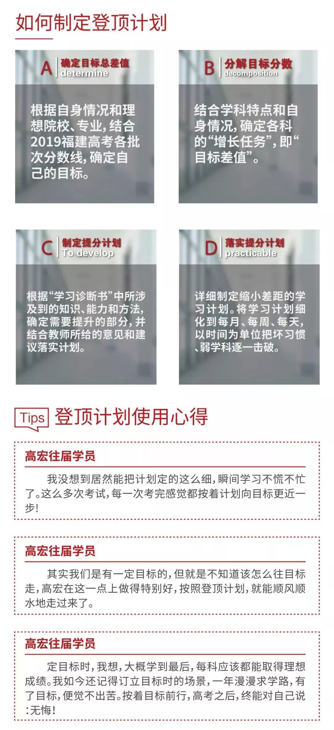 根据每个的人情况,结合目标大学和专业,帮助同学们制定一个长期的学习规划,最终落实到每一天每一科目的学习中,制定每天短期计划、周计划、月计划、年计划。就像登上顶峰一样,把山峰高度拆分为每1000米作为一个小目标,通过一步一步的坚持,达成心中所愿。