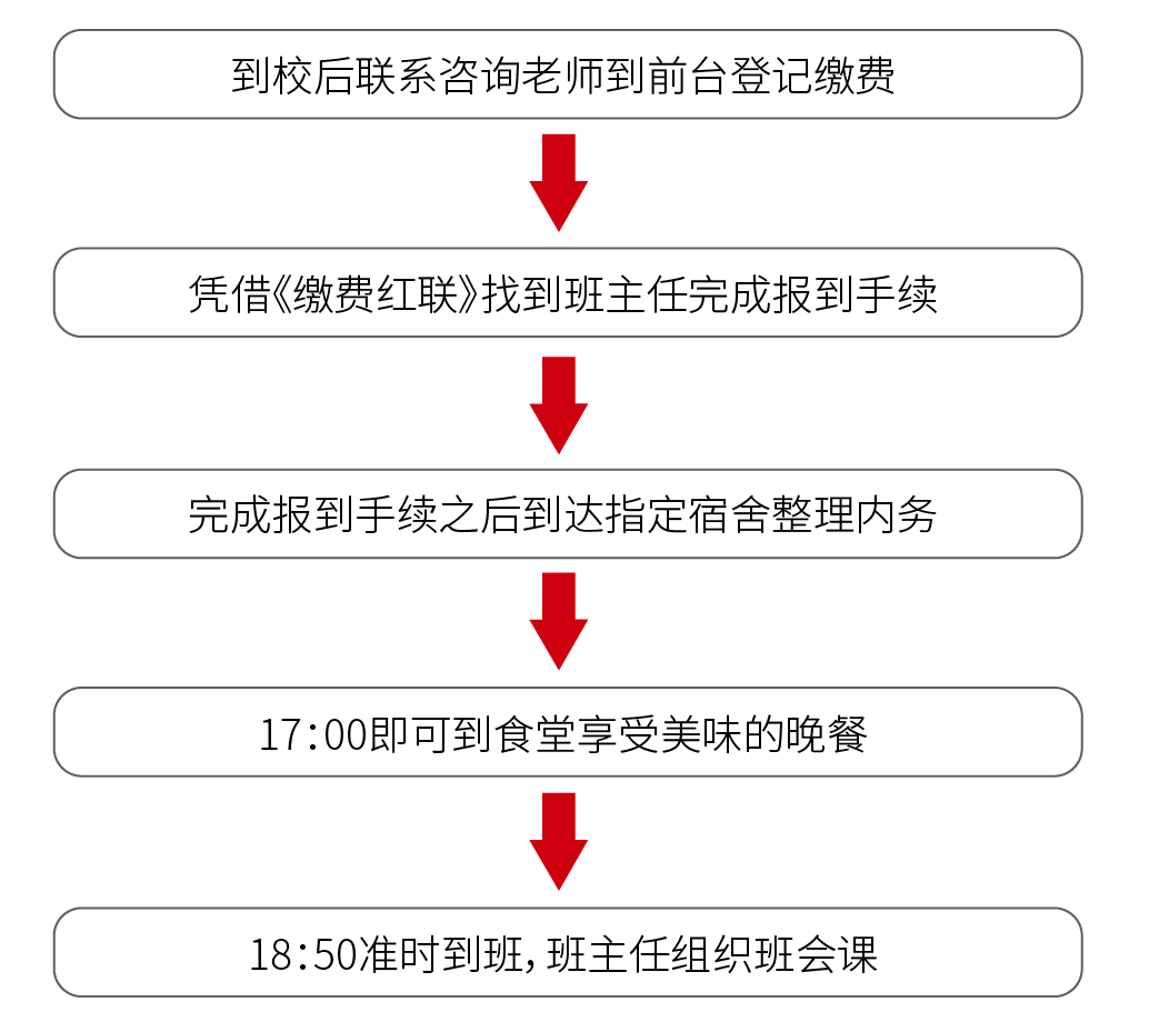 随后,同学们将在老师带领下,到达所在班级,由班主任指引下签订入学协议、确认宿舍、班级、上交入学材料。有任何问题都可以咨询班主任,严而有爱的班主任都会耐心给予解答哦。