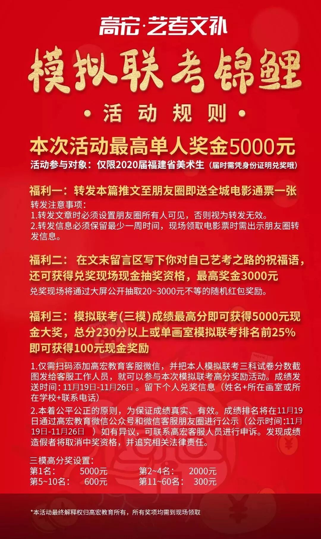 在2020届福建美术高考第三次模拟联考已经结束,高宏艺考文补期待着每一颗种子的萌发,同时也助力每一份梦想的实现!