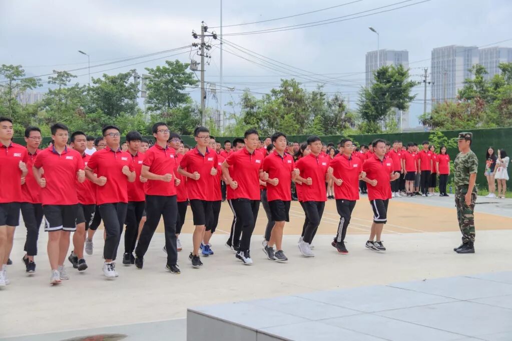 这一刻,同学们将先前训练的辛苦全都抛之脑后,先前操场上挥洒的汗水都凝聚成一股气势磅礴的力量,大家精神抖擞、英姿飒爽,蓬勃的朝气呈现出了大家顽强拼搏、奋发向上的勇气和决心!