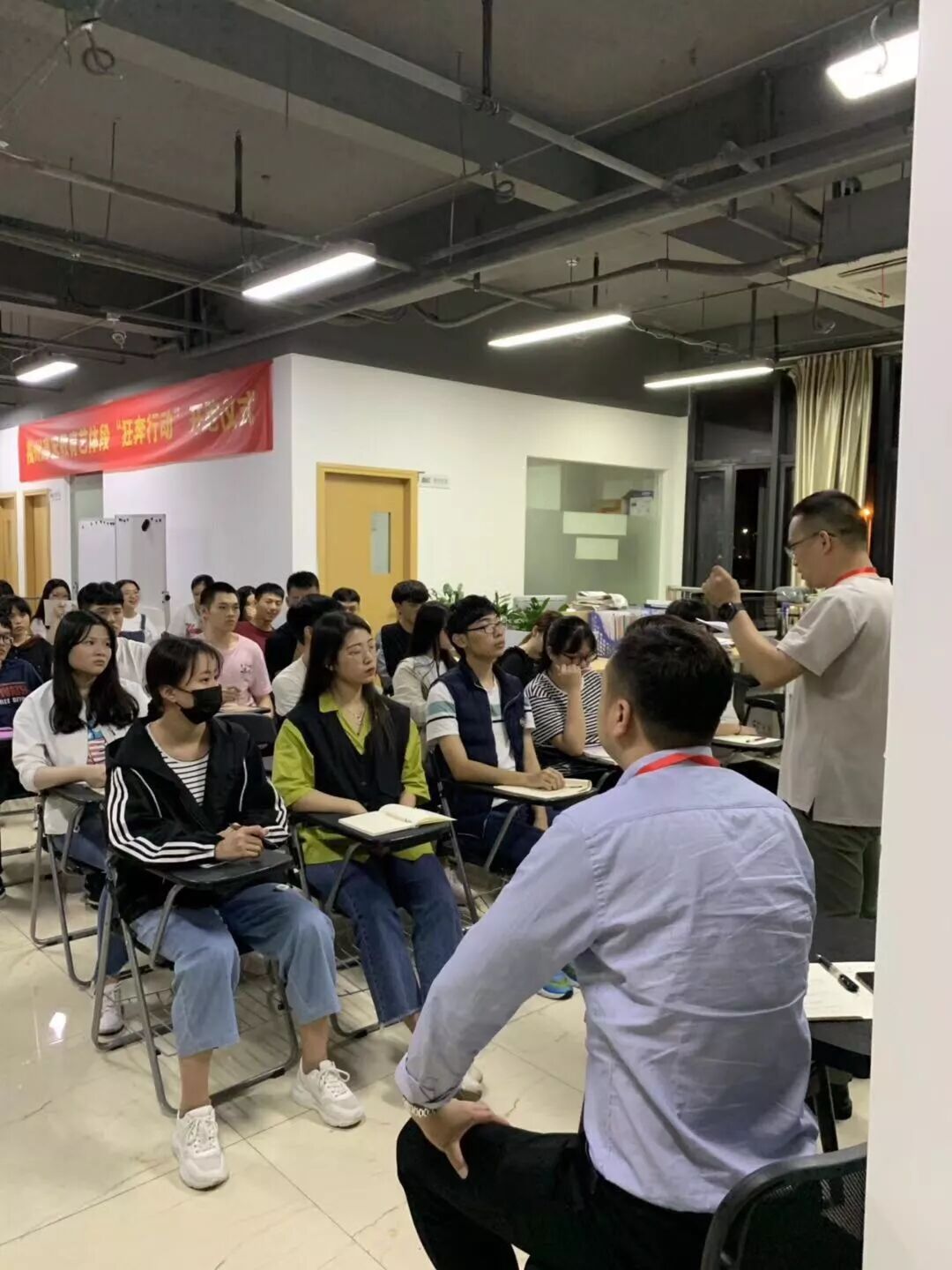 “狂奔行动”于2019年5月16日晚举行誓师大会,邵晨成、温巧荣副校长和参与行动的老师、学子们一起,铭初心,绽芳华,凌壮志,展雄风。